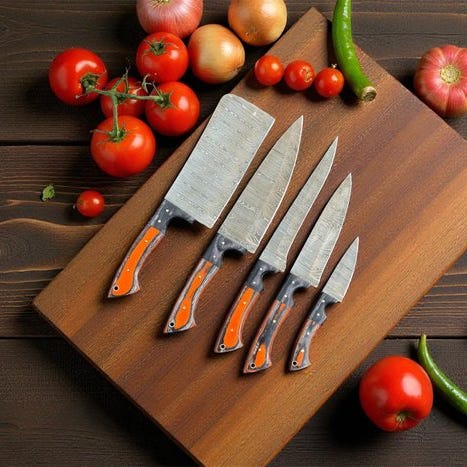 Sæt af 5 knive med forskellige bladformer og størrelser.