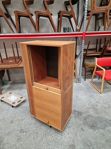 Hjørneskab, buet front, teak