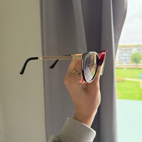 Gucci solbriller i sort med et gyldent GG-logo i metal, fremstillet i Italien, i god brugt stand med enkelte tegn på slitage, plaststel, one size. Klik på den blå "gå til varen" knap, for at købe eller byde på denne vare. Den samlede pris vil blive vist inden du afgiver dit bud.