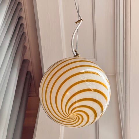 Candy ceiling lamp Light yellow/cream mouth-blown glass, D 20 cmBrass canopy, Comes with adjustable mounting/wireNew condition, Made in ItalyThe ceiling lamp is new, made in Italy by a Murano master in original forms and in mouth-blown glass.*Please be aware that all lamps are handmade and unique and can therefore differ slightly from the one in the photo.The mouth-blown glass can have small imperfections and unique characteristics, e.g. air bubbles or variations in patterns and shapes etc.