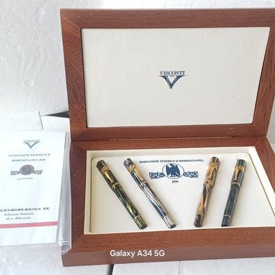 Marlen Antiche Città Italiane Venezia fountain pen, nummereret udgave, produceret i Italien af ædel italiensk resin og sølv, 167 mm lang med kapsel på, diameter 15 mm. Klik på den blå "gå til varen" knap, for at købe eller byde på denne vare. Den samlede pris vil blive vist inden du afgiver dit bud.