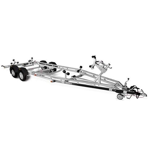 Denne brem sede to-aks lede bådtrailer er udviklet til sikker og stabil transport af både op til 26 fod. Det svejste, V-formede og varmgalvaniserede chassis giver høj styrke og maksimal modstandsdygtighed over for rust. Trailerens kabler ligger skjult og beskyttet inde i konstruktionen, hvilket reducerer slitage betydeligt. Den er udstyret med X-line Super Rollers og dobbelte heavy duty superruller, der former sig efter skroget og giver optimal støtte – præcis dér hvor båden er stærkest. De forstærkede kølruller, heavy duty super soft-kølruller og de multijusterbare sideruller sikrer fuld tilpasning til forskellige bådtyper. Det justerbare spiltårn har en indbygget sikkerhedskæde for ekstra tryghed.