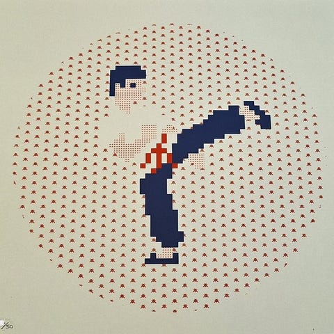Udført i digital malerstil med tætte og mættede penselstrøg, fusionerer værket ekspressionistisk æstetik med sci-fi-inspirerede elementer. De levende lys og farver — fra dyb lilla til brændende rød — fremhæver den mystiske og skræmmende aura omkring karakteren, mens den røde laser-sværd synes at skære gennem rummet selv.