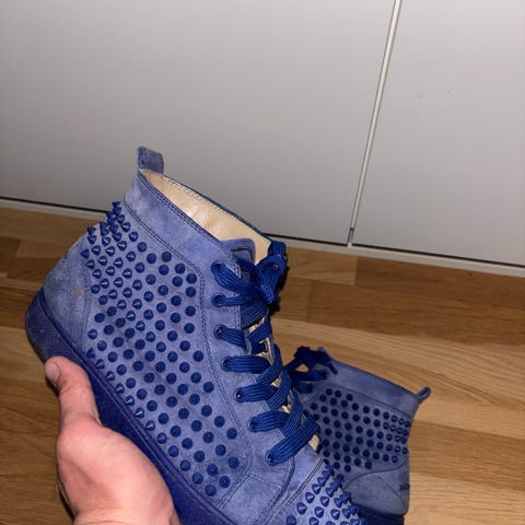 Christian Louboutin Louis Junior Spikes til herre i Bordeaux velour, størrelse 41, fremstillet i Inconnu, i meget god stand med lette brugsspor. Klik på den blå "gå til varen" knap, for at købe eller byde på denne vare. Den samlede pris vil blive vist inden du afgiver dit bud.