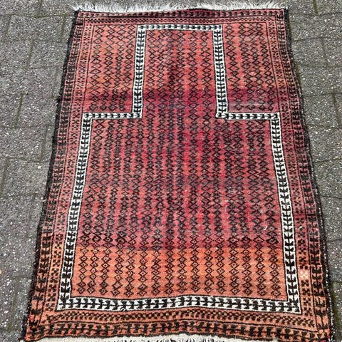 Afghansk håndvævet tæppe i uld på bomuld fra Balutsch, midten af det 20. århundrede, 145 × 92 cm, flerfarvet, ét stykke, professionelt renset og i god generel stand med tegn på alder og brug. Klik på den blå "gå til varen" knap, for at købe eller byde på denne vare. Den samlede pris vil blive vist inden du afgiver dit bud.