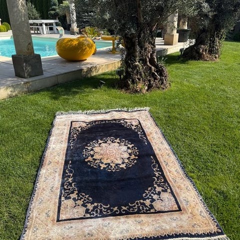 Kina ren silke på silke, i meget god stand og med meget fint mønster. Størrelse ca. 199x130 cm.