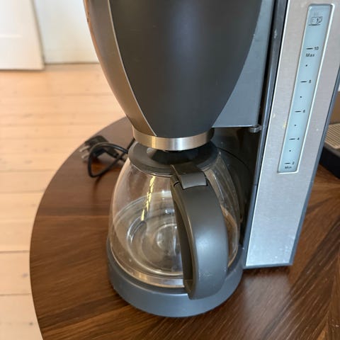 En smuk kaffemaskine, helt ny og ubrugt, i originalemballagen med vejledning og 7 originale filtre.