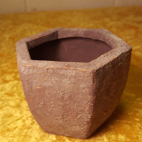 Potteskjuler i terrakotta, Firkantet med flotte dekorationer, på 4 ben, 10,5x10,5x7 cm. (654)
