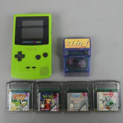 Raro Game Boy Color japansk version – komplet med æske, manual og inserts fra Nintendo, i fremragende æstetisk tilstand og fuldt funktionsdygtig!