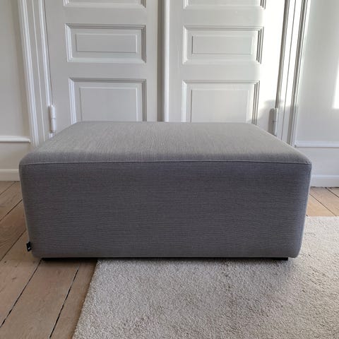 Helt ny puff fra Hay (ottoman 02 small), har kun været ude af papkassen for at tage billeder. Stoffet hedder “Steelcut trio 133” fra Kvadrat og er 90% uld og 10% nylon (tre grå tråde en lys, mellem og mørkegrå). Se her https://www.kvadrat.dk/en/products/upholstery/2965-steelcut-trio-3?srsltid=AfmBOooJJkPIPY75PGlQceKgQlZNKkx4lp5LCHuAEkQsl82X36HCl0qf&id=2965:::0133: