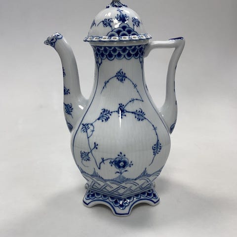 Royal Copenhagen Musselmalet Helblonde Lille sekskantet kaffekande No. 1030. 1. sortering. Måler 21 cm (8 17/64 in.)