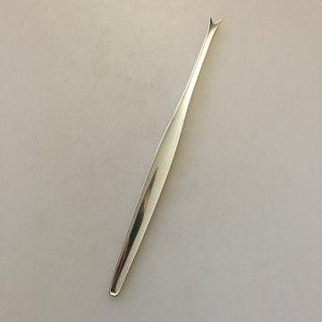 Georg Jensen Sterling Sølv Cypress Serveringssæt No 132. Design 1954 af Tias Eckhoff. 23 cm Designet i 1953 af Tias Eckhhoff (1926 - 2016) Tias Eckhoff blev udnævnt til kommandør af Den Kongelige Norske St. Olavs Orden (20. juni 2007). For hans lange karriere inden for industrielt design, var han designer af mange bestikmønstre, herunder Cypress, som han vandt Lunning Prize for i 1953. Han blev uddannet på Den Norske Kunst- og Håndværksskole. Af andre nævneværdige priser han har vundet, er blandt andet guldmedaljer ved Milano-treinnalen i både 1954 og 1957. Han var ansat på Porsgund porcelænsfabrik siden 1949 og hans designs er fortsat anerkendt i både Danmark og udlandet. De findes blandt anden på museer i New York