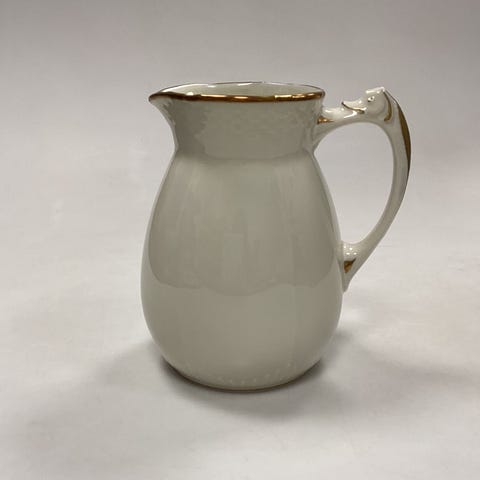 Bing & Grøndahl Aakjær Stor Kaffekande No 91A. Creme med Guldkant, I fin stand. 26 cm. 1 l. Denne vare kan afhentes i følgende butik: Lyngbyvej 155, 2100 Kbh. Ø