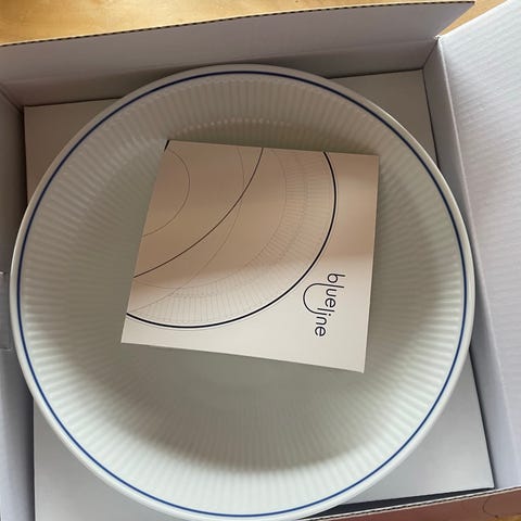 - 4 x Royal Copenhagen Blueline Line middagstallerkener - Ø27 cm. Brugt 1-2 gange (som nyt). Nypris 429 kr. pr. styk.