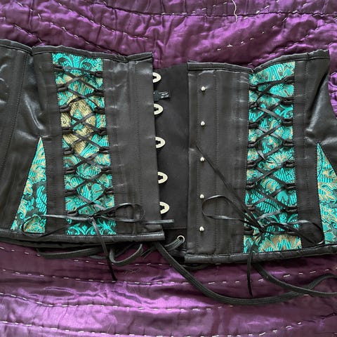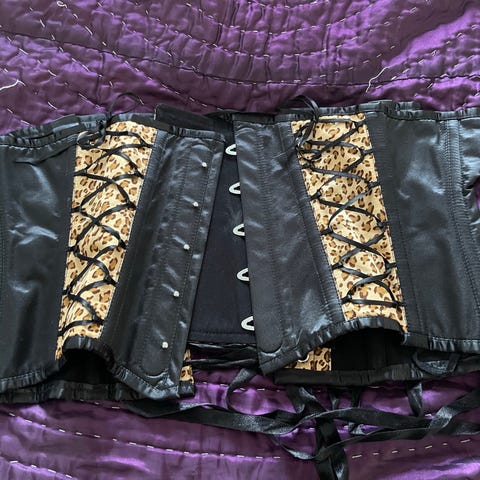 32” stålwirekorset, over bryst, aldrig brugt, passer til et taljemål på 34”/ 86cm reducerer op til 10 cm.