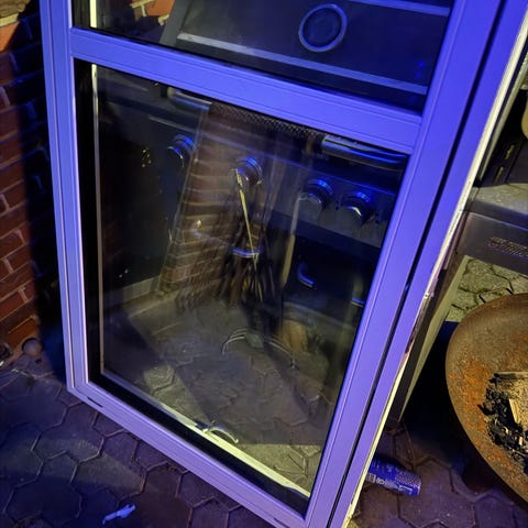 Vindue med hvid ramme og 2 lags glas. Fra 2003.