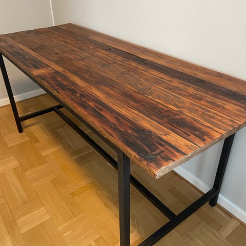 Det trænger til let slib eller rens og evt lidt lak/olie. Har lidt tush og tape mærker.