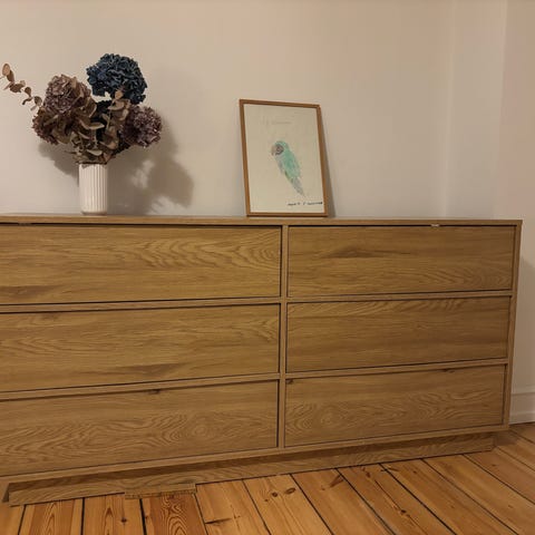 Se mer här: https://jysk.dk/opbevaring/kommoder/kommode-tapdrup-4-skuffer-1-laage-lys-egefarve