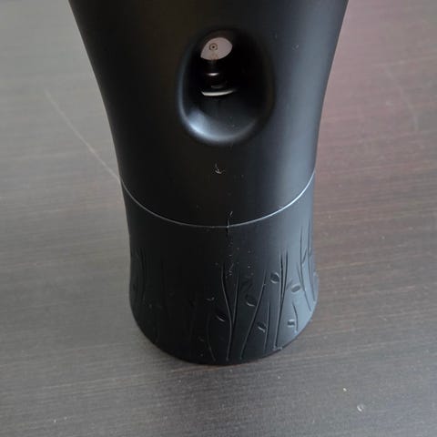 Denne automatisk luftfrisker fra Air Wick, model Freshmatic, er designet til at sprede en behagelig duft i hjemmet. Den hvid plastik enhed har en let tilgængelig batteri- og duftpatron indgang på bagsiden. Den har en aktiveringsknap foran med indikeringslys og er 22 cm lang. Luftfriskeren kræver batteridrift for at fungere korrekt.