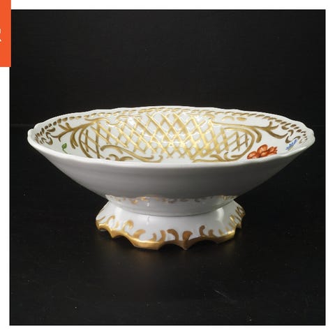 Denne skål har et farverigt håndmalet blomsterdesign med blomstermotiver i blå, pink og grøn. Skålen har en diameter på 25,5 cm og en dybde, hvilket gør den velegnet til servering eller dekoration. Den ydre base af skålen er malet med en ensartet brug af farverne og giver skålen et klassisk look med en fokuseret detalje omkring basekanten.