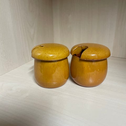 Tags: keramik, sennepskrukke, krydderi, opbevaring, brun