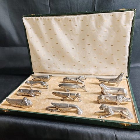 12 stk. Pletsølv franske 1930'er knivholdere (str. 33x13 cm)
