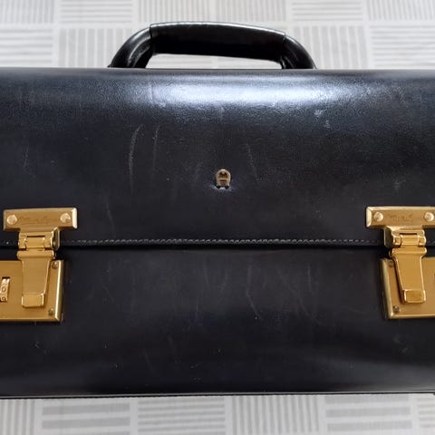 Denne lille boks har en størrelse på 31x24,5 cm og er ideel til at opbevare kosmetik eller smykker. Den er lavet af sort læder eller faux læder med røde accenter og har en håndtag på toppen for nem transport. Boksen har to låse med guld-look beslag og indvendig foring, der bærer Pierre Cardin-mærket. Udtageligt spejl medfølger