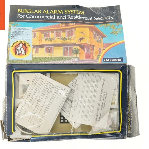Dette er et WiFi-alarmsystem pakket i en kasse, der indeholder diverse komponenter som en hovedenhed med et digitalt display, sensorer og fjernstyringsenheder. Systemet er beregnet til at sikre hjemmet gennem trådløs overvågning. Kassen har dimensionerne 21x14 cm og indeholder detaljer om produktets funktioner på forsiden.