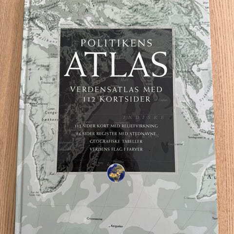 Sammendrag: Politikens Verdensatlas er et nyudviklet dansk atlas, hvor navnestof og farvelægning stemmer overens med danske traditioner. Atlasset giver en balanceret dækning af verden i gode målestoksforhold. Atlasset er praktisk opbygget med fingermærker og farvekodning af de enkelte verdenskort. Ved hjælp af kortnøglen finder man let det kort man søger.