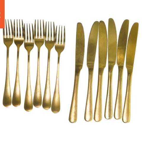Seks guldbelagte dessertgafler med en dekorativt mønstret håndtag, hver gaffel måler 14 cm. Gaflerne kommer i en sort opbevaringskasse, som holder dem sikkert og organiseret. Farvetonen er en klar og poleret guld, hvilket giver gaflerne et luksuriøst udseende. De er ideelle til at blive brugt ved særlige lejligheder eller som en dekorativ detalje i køkkenet.