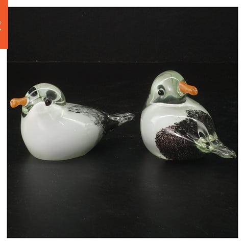 En lille glas fuglefigur, der står på en lille base. Figuren har en simpel design med en let buet hale og en let hævet hoved. Det klare glas gør det muligt at se gennem figuren, hvilket kan give et smukt spil af lys i forskellige vinkler.