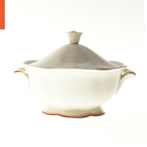 En hvid rund keramisk skål med en diameter på 19,5 cm. Skålen har en rillet struktur langs ydersiden, hvilket giver den et klassisk og tidløst design. Den indvendige overflade er glat og skinnende, hvilket gør den let at rengøre. Bunden er flad og også hvid. Det er en praktisk og stilren skål, der kan bruges til servering eller som en dekorativ genstand.