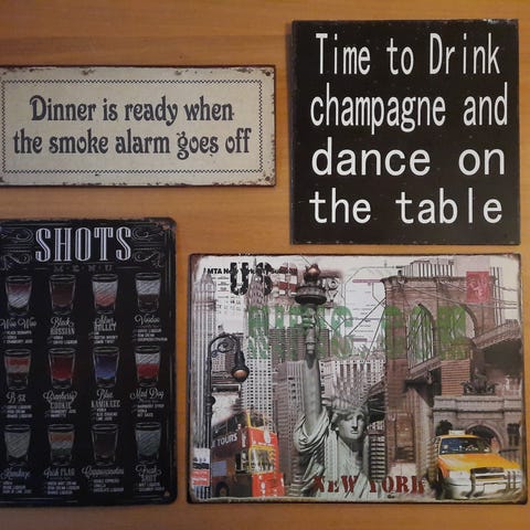 Dette dekorative metalskilt med strandtema måler 35x26,5 cm. Skiltet viser en strandparasol og en liggestol i blå og beige nuancer, med ordet 'BEACH' skrevet lodret langs siden. Skiltet er designet til at give et vintage udseende med en slidt finish, som kan ses i hjørnerne og langs kanterne. Bagsiden er ensfarvet og har to huller for nem montering på en væg. Det har et retro stranddesign og kan bruges som en dekorativ tilføjelse til hjemmet eller kystnære omgivelser.