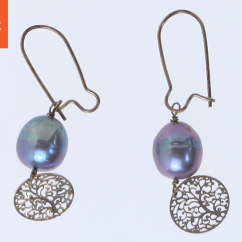 Disse øreringe har en perle i en mørk lilla farve, monteret på en klassisk sølvfarvet metalramme. De er små og diskrete med en størrelse på 20 mm, hvilket gør dem perfekte til både hverdag og festlige lejligheder.