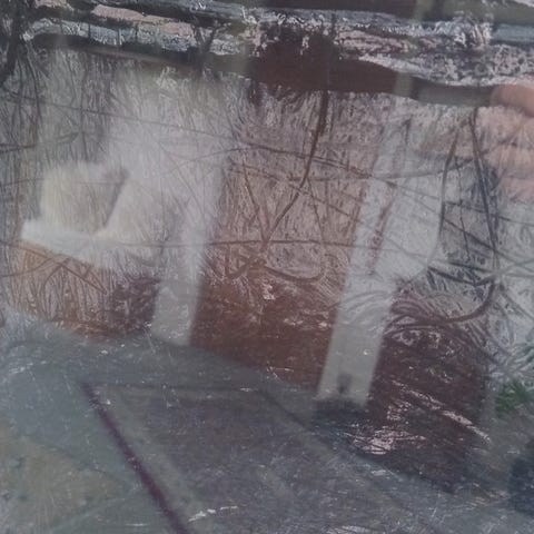 Et kunsttryk, der viser et trapperum set ovenfra. Trappen ser ud til at være indendørs med paneler langs siderne. Målene på trykket er 59x42 cm. Billedet er ikke indrammet men det er rullet sammen, hvilket fremgår af det medfølgende billede.