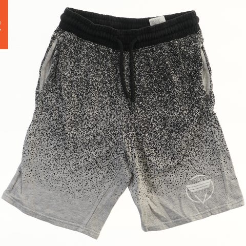 Et par blå og hvide stribede strandshorts med elastisk talje og orange snøre til justering. Der er en lille lomme med en dekorativ knap på bagsiden og et lille logo på forsiden. Shortsen er lavet af let materiale, der er velegnet til strandbrug.