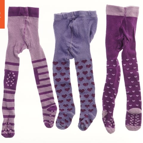 Børne-strømpebukser med horisontale striber i blå og grå nuancer. Tæerne og hælene er ensfarvet blå. Materialet ser blødt og fleksibelt ud, velegnet til komfort og varme.