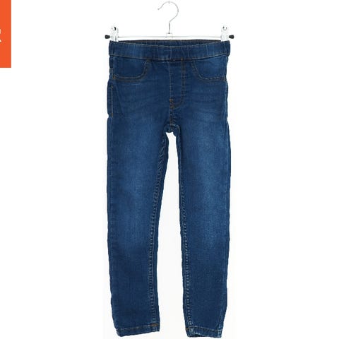 Disse børnejeans er i en blå denim farve. Foran har de standard lommer og knaplukning. På bagsiden er der to lommer, hvoraf den ene er dekoreret med teksten 'STREET STYLE' i blå farve.
