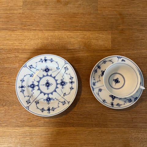 Tags: porcelæn, Royal Copenhagen, kop, underkop, blå dekor.