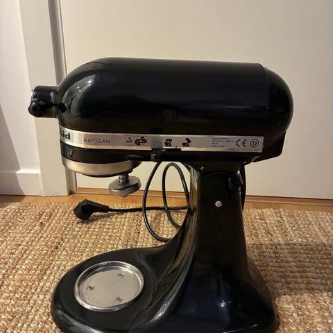 KitchenAid Artisan køkkenmaskine i sort farve. Maskinen er velegnet til blanding, æltning og piskning af ingredienser til bagning og madlavning. Fremstillet i robust materiale med en stor skål til effektiv brug.