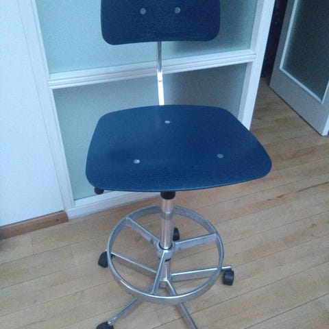 Designer: Kasper Salto (kendt fra TV). Enormt smuk og funktionel. Teleskopisk stel i anodiseret aluminium. Sæde i polyester fra Gabriel. Fuldstændig som ny. Farve: turkis / lysblå. Nypris 2349 kr.