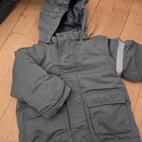 Fin småblomsteret vinterjakke, str 2 år (92) med aftagelig hætte.
