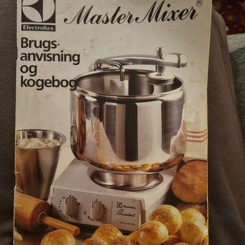 Ballerup master mixer køkkenmaskine med rustfri stål skål og flere tilbehørsdele. Maskinen er velegnet til forskellige køkkenopgaver som æltning, og hakning med de medfølgende redskaber.
