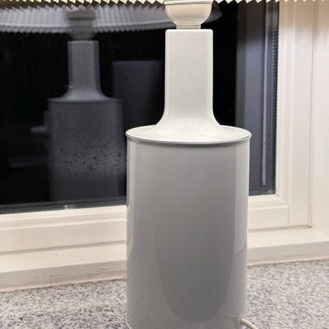 49 cm høj Blåkant bordlampe af Grethe Meyer. Mærkatet siger Ekstra stor :) Den er klassisk hvid, med den karakteristiske, diskrete, tynde blå kant på top og ved bunden. Det gør at mange, nærmest alle, skærme pynter på den. Og den pynter i sig selv. Bunden har en diameter på 13 cm. Der er afbryder på ledningen. Tænker den ikke er nem at sende :) Hvis du er elle vild må vi snakke om det ;) #royalcopenhagen #kglporcelæn #blåkant #grethemeyer #klassiker #1965 #indretning #bolig #bordlampe #lys #lampe #kongeligporcelæn #ildpot #designer #danskdesign