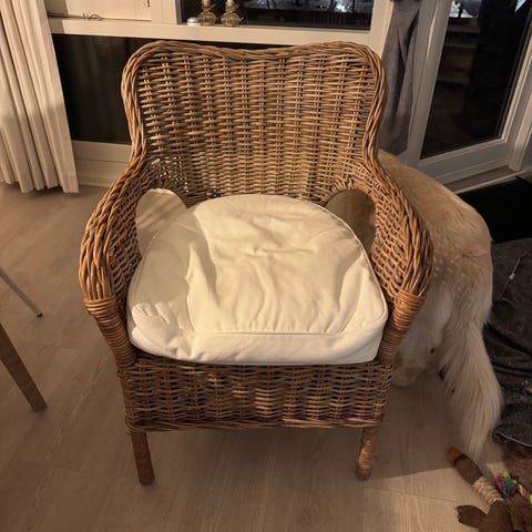 Ikea lænestol / loungestol i flet (rotting). Udgået model. Aldrig brugt, købt i sommer (2025). Modellen hedder "Stockholm 2017". Stand som ny. Sælges grundet flytning. Kun afhentning, prisen er ikke til forhandling.
