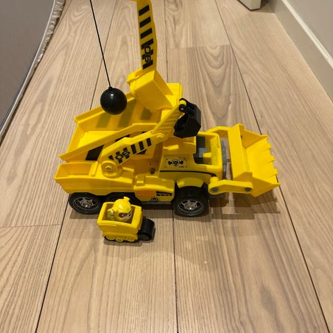 Bevægelig kranarm og grab. Træstammer og jernbomme følger med.