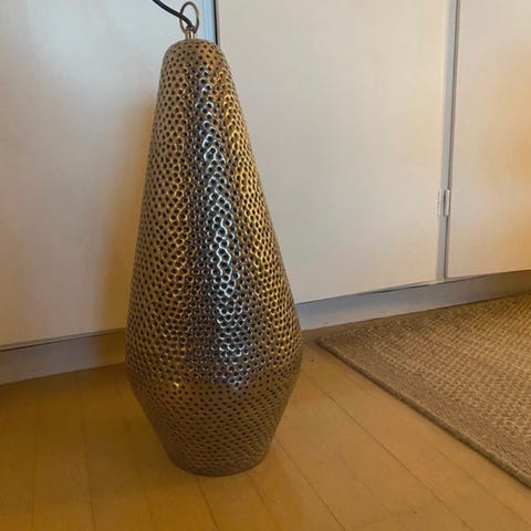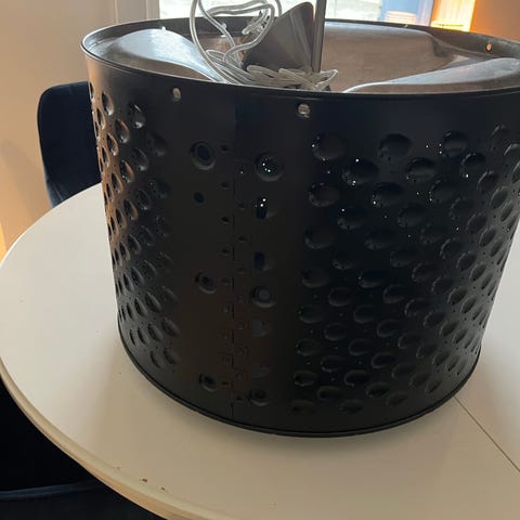 Flot loftlampe, lavet af vaskemaskine tromle. Kan bruges både som loftlampe og gulvlampe.