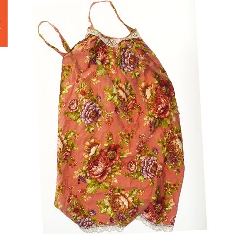 Denne tekstil er 90x90 cm og er i en levende orange farve med blomsterprint i lilla, rød og grønne nuancer. Mønsteret inkluderer forskellige blomstertyper og delikate grene, der giver et dekorativt og farverigt udseende.