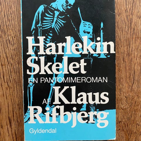 Harlekin skelet - en pantomimeroman, Klaus Rifbjerg, genre: roman, Org.hæftet 1.udgave, Gyldendal, 1985, 183 sider.