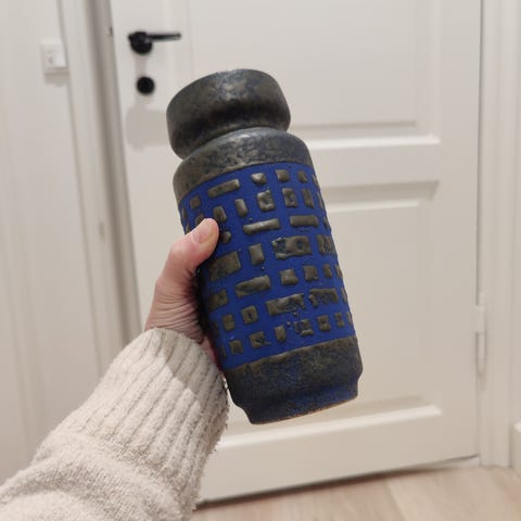 Vase, West Germany, Højde 18. Smuk og helt intakt vintage vase i lyse gul og lyseblå med strejf af brun. Til lille buket.